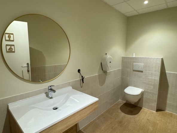 Chaque cabinet est pourvu d’un point d’eau avec eau chaude et d’une climatisation réversible. Un soin particulier a été apporté à l’acoustique afin de garantir tranquillité et bien-être de tous.